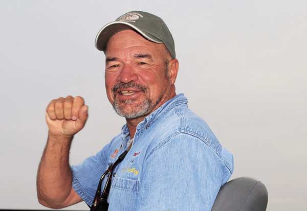 Sexton, like St. Cyr and Lieux, looks for layered water. One tactic that he uses to find clear water beneath a muddy surface layer is to watch behind his boat to see if the motor’s wheel wash turns up clear water. Sometimes he will run in complete circles to better inspect his tracks.