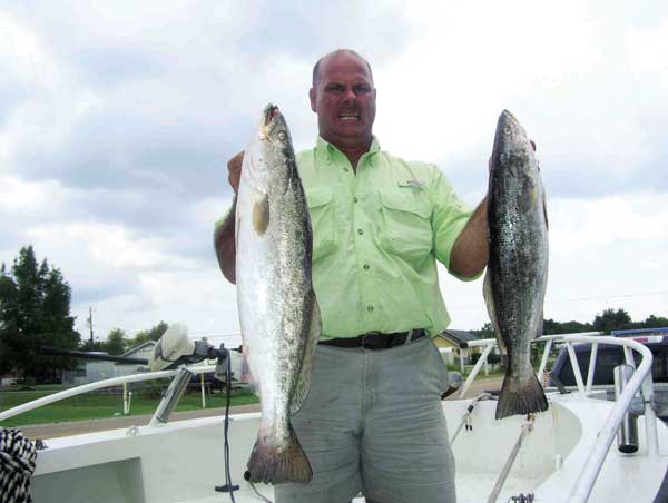 Farthest to the west, except for little-fished Sabine Lake, is Calcasieu Lake, known affectionately as “Big Lake.” Six Trout Masters fish this lake regularly: Kirk, Guy and Bobby Stansel, Jeff and Mary Poe and Will Drost.