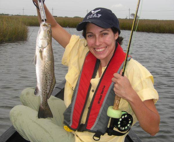 Another name on that list is Capt. Jeff Poe of Big Lake Guide Service. Jeff is not only an excellent fly caster and tier, but he’s also one of the few guides in Louisiana who targets speckled trout on the fly.