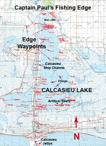 As a help in fishing the area, I have compiled fishing waypoint positions throughout the area. Captain Paul’s Fishing Edge of GPS waypoints of Calcasieu Lake has more than 135 locations — and it is one of 21 different Edge Fishing Areas offered.