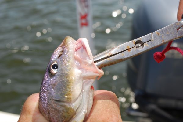 Redfish and black drum freeze well but aren’t as prized as trout for table fare. Their massive bone structure and large scales make them difficult to fillet. Fish of both species over 10 pounds are scorned. The flesh of black drum, particularly larger ones, can be loaded with parasitic worms.