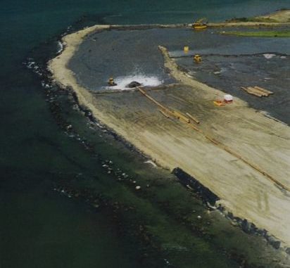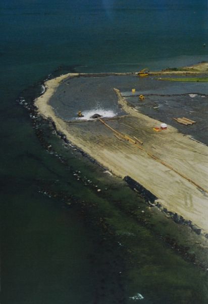 Land loss at the headlands was stopped. Very little more sand moved downcurrent to East Timbalier Island. Unfortunately, normal erosion processes continued to eat at that island, with its sand moving to West Timbalier. Sand loss was worsened by hurricanes undermining and burying the huge rocks that once protected the island.