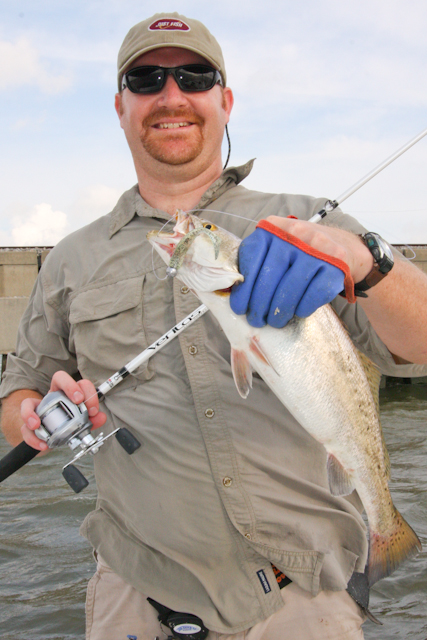 All three of us began our morning throwing Lemon Drop Hybrid minnows on 3/8-ounce lead-head jigs. Miller reminded Templet (aka Choppa2909)and me that he had caught most of his trout just a few days before on subtle short hops rather than violently popping his bait off the bottom. That same retrieve was exactly what the fish wanted again this morning.