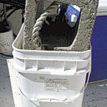 As we pulled closer to the dam I could see the heads of anglers fishing on the other side of the dam, and from the sound of their voices I could tell they were catching some fish. Sanchez has a very special anchor just for use on the rock-strewn, anchor-grabbing bottom by the dam. I’d asked him about the rope attached to a cinderblock, sitting in a big square bucket on the deck.
