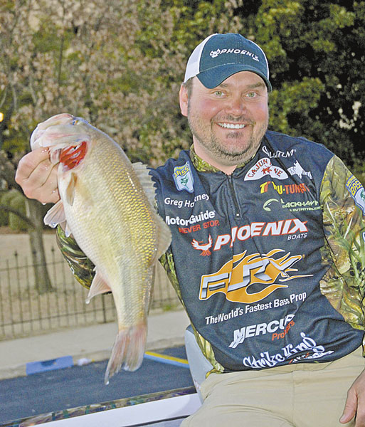 The bass may not be holding tight to the cover. In October, I’ll use a medium-to-fast retrieve, covering a lot of water with the Red Eye Shad. If I’m not catching the bass on the Red Eye Shad on the flats, or if I’m having good action but for some reason the bass stop biting, I’ll pick up a Strike King Series 3 crankbait in the same colors. I’ll return to those banks I’ve fished with the Red Eye Shad but move out somewhat deeper to fish 4- to 6-foot-deep water with the Series 3. I’ll be using a medium-to-fast retrieve with the crankbait. I like to deflect the crankbait off some type of cover, running it into the poles of the boat docks when I’m fishing around them.