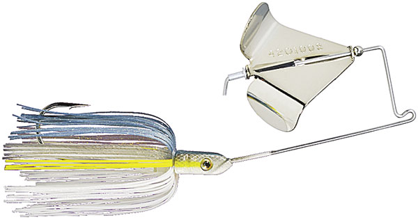When there’s wind on the water, instead of using the buzz bait, I’ll fish a 1/2-ounce Strike King Premier Plus spinnerbait in the sexy shad color. If the water’s clear, I prefer the sexy blue back herring color. If the water’s got more stain to it, I’ll fish a combination of chartreuse and white. Generally at this time of year, I either can fish the buzz bait or the spinnerbait until about 10 a.m. on these lakes with success.