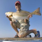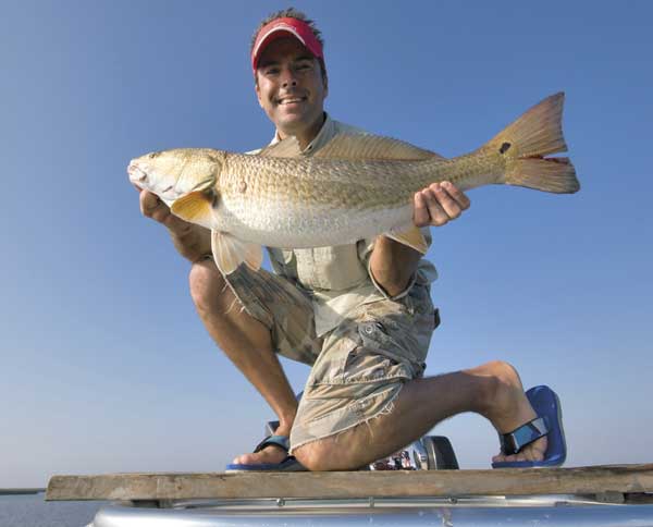 Before I could even complain about having to stand on top of the plank with him, he was excitedly calling out individual fish and making casts toward them. His second cast was rewarded with a resounding thump, and he drove the hook home into the jaw of a 15-pound red.