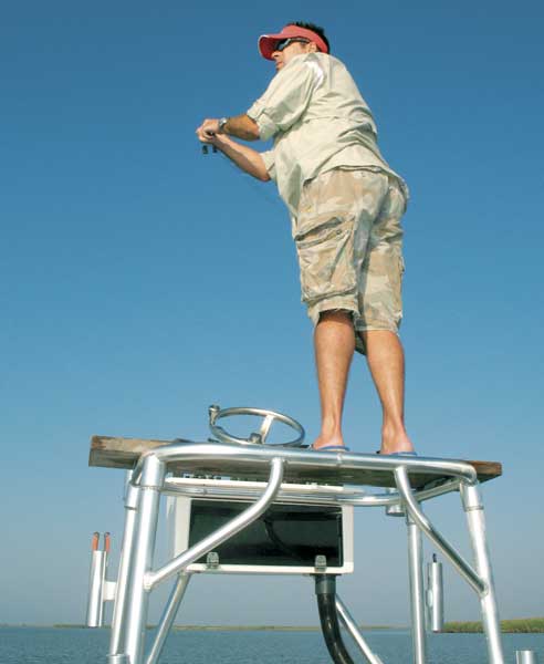 “I haven’t been in too many situations where the extra height has been a disadvantage,” said Jon Culpepper. “The higher you go, the larger your field of vision expands. Say you’re sight casting from a boat deck — you might only be able to see out 15 feet in any direction from the boat. Well, you get on top of that tower, and you can see out a lot farther than that.”