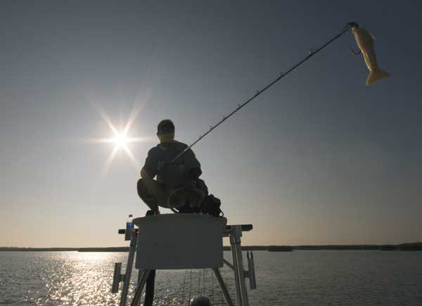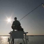 “We can see out to about 60 feet on a sunny day,” he said. “An angler on a casting platform can see out to about 30 feet on a sunny day. A cloudy day reduces both anglers’ fields of visions. But our field is reduced from 60 feet to 40 feet. The guy on the casting platform, his vision goes from 30 feet down to 10 feet.”