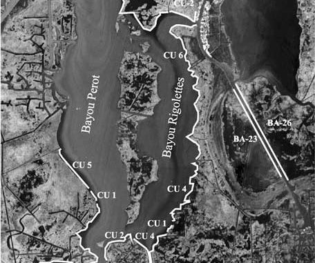 That effort, called the Jonathan Davis project (CU-2 and CU-3 on the accompanying map), is addressing shoreline erosion problems along the upper portion of Bayou Rigolettes from where it enters the BBW south of Lafitte westward across the northeastern shoreline of Bayou Perot to the Gulf Intracoastal Waterway