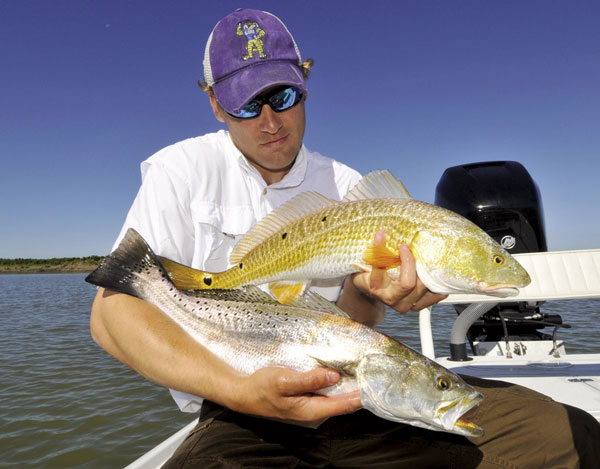 “I may lose the school of redfish a while,” he said, “but it’s more important to me to get the big trout in rather than stay on the reds. I can find them again later. It’s really helpful to have a partner fishing with you when you’re doing this because if you do hook a big red, he can stay with the school while you battle the red and get him back in the water.”