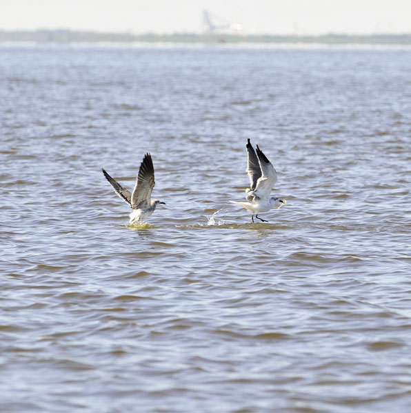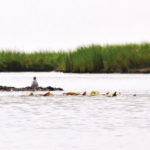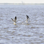 However, Drost emphasized the importance of birds when looking for big schools of redfish. Schools of feeding redfish typically attract more diving birds than smaller schools of trout, so Drost checks groups of distant birds with his binoculars before deciding to go check out what’s going on.