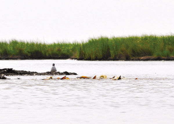 “On calm days, you can find the schools right out in the middle,” Drost said. “I like to look for slicks, but on the greasy, calm days we get during the summer, it’s hard to spot the slicks. I like to use binoculars to search for any sign of feeding reds. It could be just a little nervous-looking water, or it could be sprays of white water from feeding activity.”