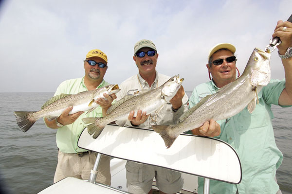 You may have to make a lot of casts to a lot of schools to hook a big trout, but you can bet that if the fat boys are there, they aren’t going to pass up anything that looks like an injured mullet for too long.