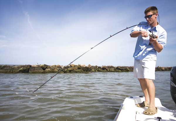 In that time he’s learned that when the reds decide it’s time to move from the Gulf of Mexico into Calcasieu Lake, they don’t have any choice but to swim between the two sets of jetties. And when they do, there’s no place he would rather be than between these two long lines of rocks.