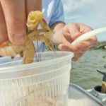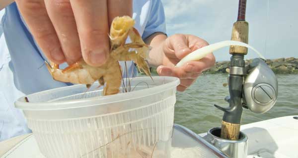 “You can catch reds out here on artificials like Rat-L-Traps,” said Matt Solari, “but you really need something dead or live and smelly. Market shrimp is quick and easy for tipping a jig, but I know some anglers who prefer cracked crab or even live mullet on a Carolina rig. I don’t think it really matters as long as you have something that smells like food sitting down there on bottom when they pass by.”