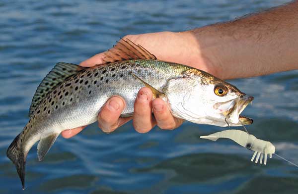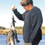 I cast toward the rip, twitched it twice and — WHAM! — had me a double. After three more, I forsook the shrimp. They were in a frenzy, and hit it just the same. You talk about a ball, my friends.