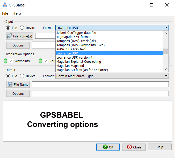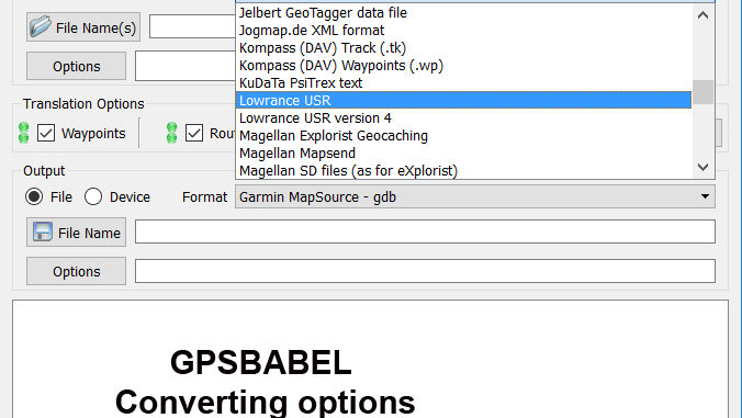 According to their web site, “GPS Babel is a Software that converts waypoints, tracks, and routes between popular GPS receivers. GPSBabel is a cross-platform, free software to transfer routes, tracks, and waypoint data to and from consumer GPS units, and to convert between over a hundred types of GPS data formats. It has a command-line interface and a graphical interface for Windows, MacOS, and Linux users.”
