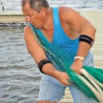 So he took a 12-week, $12 course on cast-net making and repair at the Biloxi Recreation Center in 1978. The course was good, but he still couldn’t throw a cast net properly. His eureka moment occurred on a Biloxi pier one day, when an old man, tired of hearing his complaints about his net not opening, looked at him in disgust and uttered three words, “Snap your wrist.”