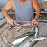 He encourages people who don’t want to invest in a top-quality net to use their smaller bait cast nets. Access to piers located in water less than 6 feet deep makes mullet fishing easier. Cast netting by standing on the bow of a boat can be very effective, but demands a good helmsman to keep the boat off the net and the caster standing upright.