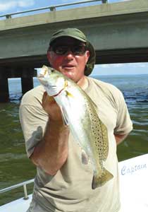 Gallo said that normally the speckled trout action at the bridges turns on in April, hits its peak in May, and then gradually fizzles as near tropical heat sets in for the duration of the summer. It’s not that the action stops completely at the bridges in the hottest months, but concentrations are harder to find and action can be spotty at best. So Gallo says once the mid-summer heat sets in, many anglers start heading over to Seabrook to find trout.