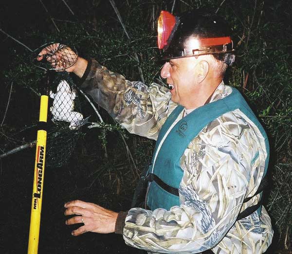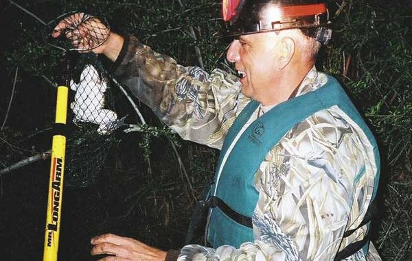 “No grabber goes in my boat,” Brown said. “I bring a net with me, in case they are on the bank or in case they’re up in the woods. You can switch over to the little net and catch him, but in the water, we strictly use our hands. It’s faster in these little boats like mine.”