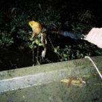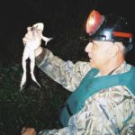 Regardless of what tool you decide to use, frogs that have been heavily hunted become wild. The least little things disturb them. One is a shadow passing between the frog and the spotter’s headlight. Be sure if you’re doing the catching to stay out of the spotter’s light that is shining the frog. They’ll spook otherwise.