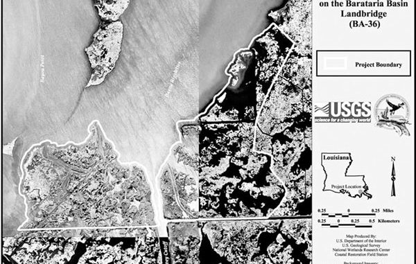This project consists of the dredging of a little more than 5 million cubic yards of mud from the bottom of Bayous Perot and Rigoletts and the pumping of that mud onto shallow water bottoms and broken marsh near the southern end of Bayou Rigoletts to create a little more than 1,200 acres of new marsh. Estimated cost is $33.7 million.