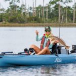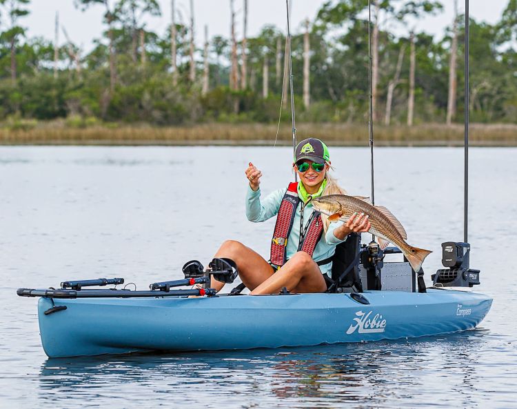 This nimble hybrid was born of Hobie’s premium line of pedal kayaks. Taking the best features and design of the popular Outback, Revolution and Pro Angler models, the lightweight Compass is an entry level kayak with all the fishability of those higher end models. As the country song says, “It’s got everything you need and nothing that you don’t.” Powered by the proven and powerful Mirage Drive GT, the Compass is easy to pedal, and the integrated forward-set rudder turns the kayak on a dime. The elevated mesh seat provides dry, all-day comfort, and the Compass also includes a built-in transducer plate to seamlessly add a Lowrance or other fish finder. Two molded in rod holders, an 8-inch round storage hatch and a mesh covered gear well up front provide ample storage. Recessed H-Track mounts on both sides provide lots of gear-rigging options. This Compass comes in at 68 pounds hull weight, is 34 inches wide, 12 feet long and has a total weight capacity of 400 pounds. It’s a light, stable, speedster that comes in two new colors- slate blue or sea grass green — with an MSRP of $1949.00.