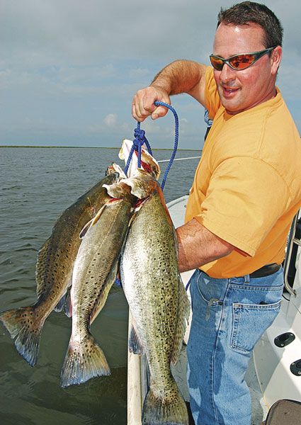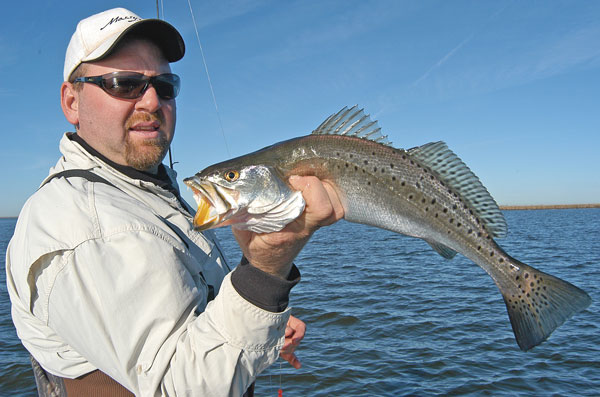 The trout, however, weren’t spooked in the least. My buddy and I each threw cork-suspended DOA shrimp, and hooked up immediately with every cast.