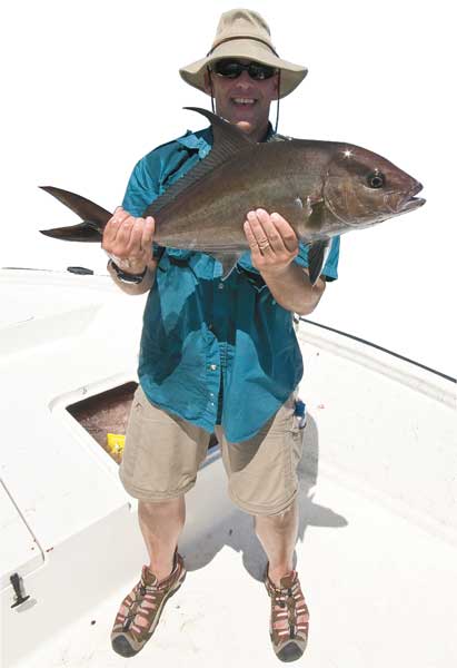 “On our most recent trip to the 7-Mile Rigs, the surface water was very brown, but we started hooking up with AJs and almaco jacks so frequently that another boat came alongside to see what we were using.