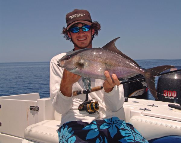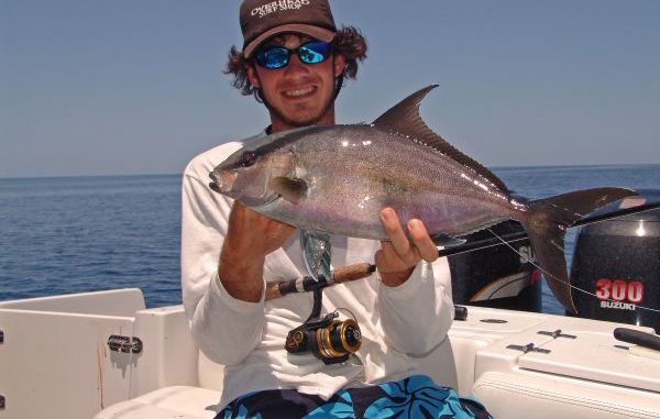 • Almaco Jack (Seriola rivoliana) — A common bycatch with light tackle, almacos have similar coloration as greater AJs, but the lateral stripe is usually less pronounced and the eye shadow is on par with that of the lesser amberjack.