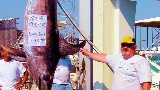 Exactly 2 years to the day, and almost to the exact hour, that Hurricane Ivan struck Orange Beach, Ala., the Gulf of Mexico swordfish record was broken. Angler Del Sawyer, along with Capts. Randy Howland and Robby Griffiths and crew of the Sea Reaper III, hooked the swordfish at 3:45 a.m. on Sept. 16. Sawyer fought the 448-pound fish, while standing up, for 3 hours and 45 minutes.