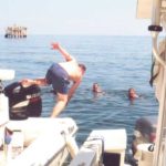 Some whoops and claps jerked my head around, and I saw a circle had formed. Sure enough, both Howie and Doc were in the middle trying to outdo each other while poppin’ the ’gator. With all the racket, I figured we’d all be getting booted out of the marina in short order. But no, the lunacy proceeded and got even crazier.