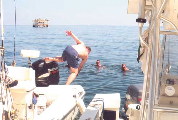 Problem is, at the deeper rigs you never really know which way the current’s going down where your bait is. The currents in the Gulf are often layered — going in one direction for the first 10 to 50 feet from the surface, then the switching in the opposite direction. Then maybe back again at real deep rigs. It’s weird. Scuba divers know this.