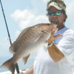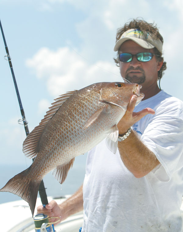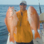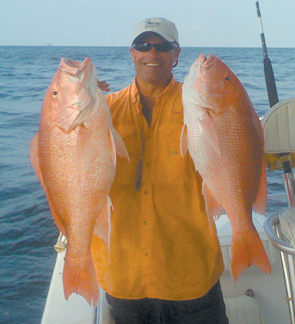 “WOW!” was all Toby could manage as he held on with a crazy grin. Chris was right beside him, grunting and pumping away as his rod smashed the gunwale bar. Soon you could see the appetizing pink-red through the water below as Chris tightened his drag and made some headway into half his red snapper limit.
