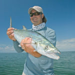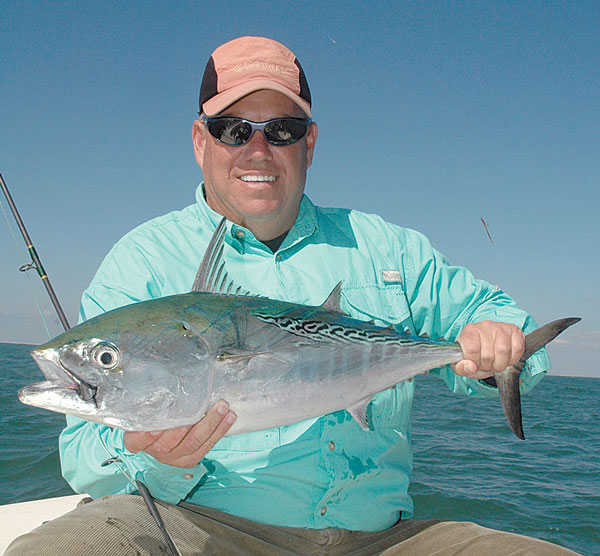 We prefer short hauls, casting shrimp and squid-sweetened jigs on medium spinning tackle, and returning with boxes full of the mixed fish Pelayo mentioned above. All swarm around our shallower rigs, all slam shrimp or squid-tipped jigs, all then provide spool-sizzling, muscle-cramping action on medium spinning tackle. And all can be rendered delectable either on the grill or in the pan (yes, even the bluefish).