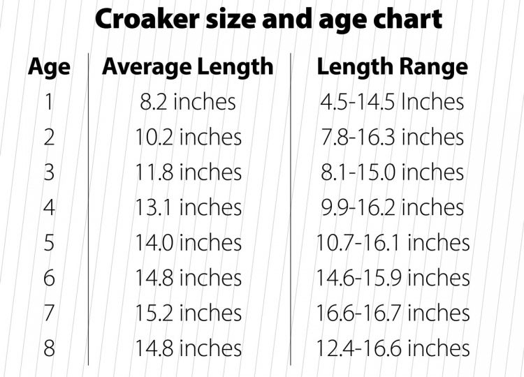For example, a 13-inch croaker could be 1 year old or it could be 5 years old. Part of this could be due to the long spawning season for the species, beginning in September and going well into March in the Gulf of Mexico.