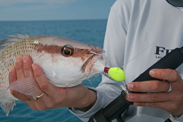 A more streamlined approach than the standard slip sinker rig, a bucktail presents a larger profile to grab the attention of red and mangrove snapper.