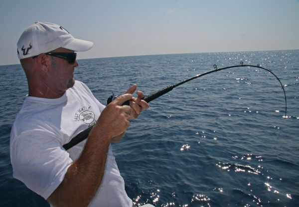 “You have to keep the line tight because when you give the fish a break, that’s when the hook comes out the most. As soon as that fish gives you a little and it feels like it’s coming your way, you’ve gotta keep it on him.”
