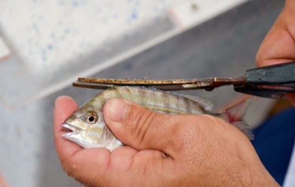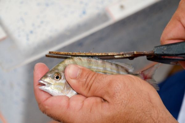 Heikamp and several of the fishermen doctored their pinfish before using them by taking a pair of scissors and snipping off their dorsal (back) fins.