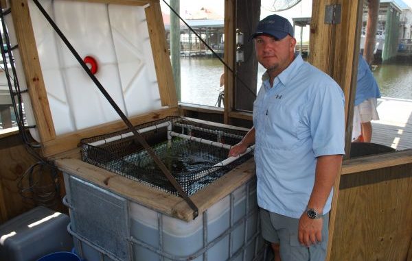 Zeringue’s system can hold 300 to 400 croakers for an extended period of time.