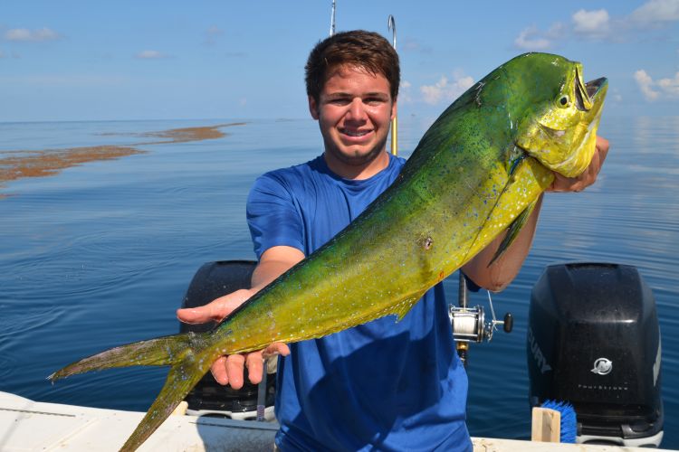 But blue water is where dolphin live. To find adequate food supplies, they haunt the biologically-rich sargassum weed beds and rip lines, which create their own ever-moving ecosystem.