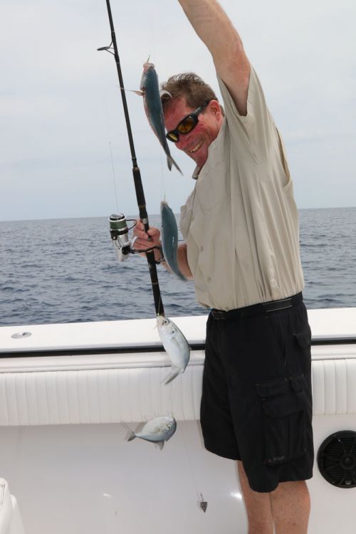 Butler’s fond of big hardtails (blue runners), bluefish and big greenies (threadfin herring). Jackson seconds that opinion, and adds in bonita and pogies.