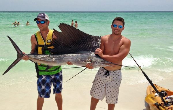 “Mitchell gave me the rod back, and I fought the fish up to my kayak,” Ruel said. “We were concerned it would jump by the boat and impale one of us, so we worked it between our kayaks and was able to get a rope around it, tie it off to my kayak and paddle in to the beach.”