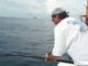 Approaching the feeding tuna can be a little tricky. That’s why Daughdrill moves upwind of the schools. This way he can let the wind and tide quietly push him down to the school. From there, he chums the school and drifts live mullet to the tuna. Fishing this way has produced yellowfin from 125 to 185 for Daughdrill recently.