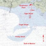 This shoal area is about 10 miles south-southwest from the Southwest Pass of Vermillion Bay at a bearing of 201 degrees magnetic. It is a shoal area that appears on maps as a large banana laying in an east-to-west position.