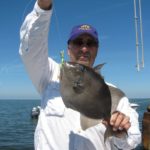 And the very conditions that would make inside fishing tough made them ideal offshore. A slack tide inside means a slack current out here, hence our baited jigs would stay close to the beams, where trigs (and mangroves and pompano) tend to hang out.