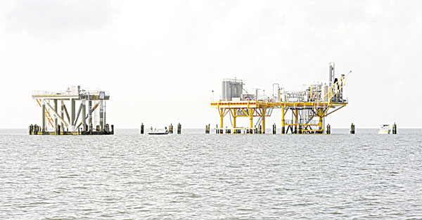 “I like to start out about 100 yards away from this well head and fish toward it with a Carolina-rigged live shrimp,” he said. “The water is about 10 feet around it, and there’s a good shell pad on bottom that surrounds it. Like all these other rigs, the shell pad is what attracts fish to this spot.”