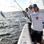 “My fish had some muscle and didn’t want to come up to the surface,” Evans said. “It was fighting hard and I was pushing as hard as I could; gaining some line then losing some line. Technique-wise, it’s important to reel or gain line while the tuna is on the outer pass of the pinwheel and then reel back down when on the inside or closest side to the boat.